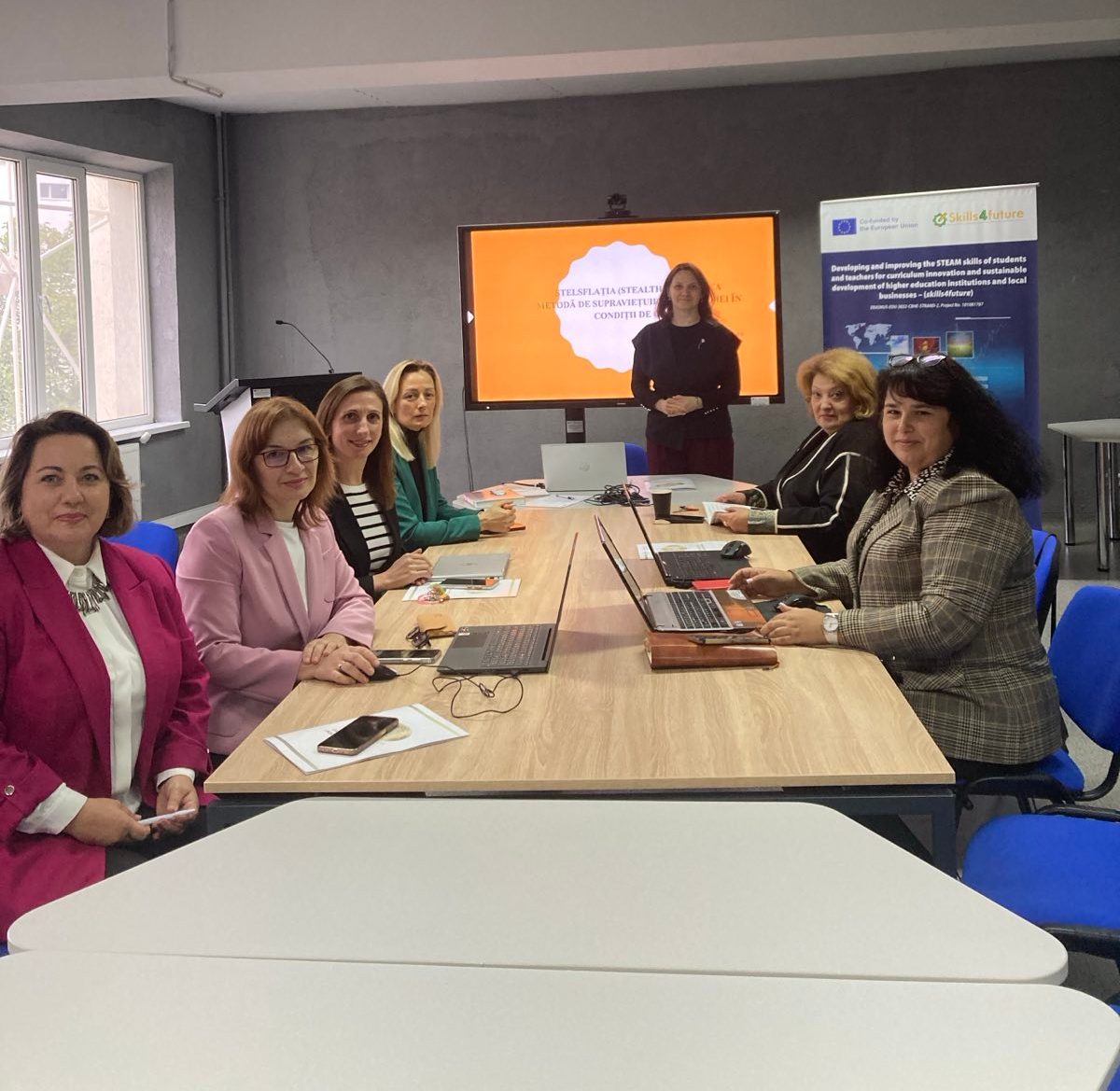În cadrul acestei sesiuni, participanții au fost informați despre progresele semnificative realizate până în prezent în proiectul Skills4Future. De asemenea, au fost prezentate planurile viitoare de modernizare a curriculumului universitar, axate pe îmbunătățirea competențelor în domeniile STEAM (Știință, Tehnologie, Inginerie, Arte și Matematică). Un accent deosebit a fost pus pe implicarea activă a studenților în elaborarea tezelor de an și a lucrărilor de licență, precum și în desfășurarea cercetărilor științifice orientate către soluționarea problemelor sociale, economice și de mediu.