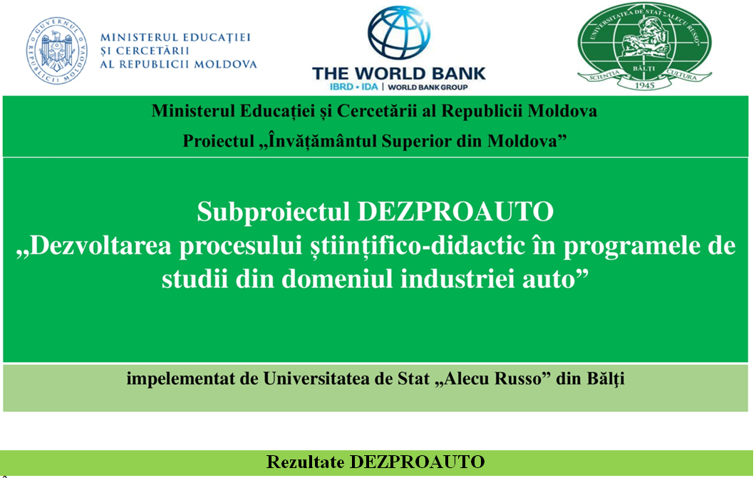 În cadrul subproiectului „Dezvoltarea procesului științifico-didactic în programele de studii din domeniul industriei auto”/DEZPROAUTO, nr. Acordului de subfinanțare: MD-MOED-6542-ASF-C-08 din 24 octombrie 2022, Universitatea de Stat „Alecu Russo” din Bălți a realizat obectivele planificate și a contabilizat următorii indicatori de performanță: